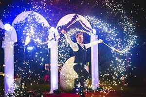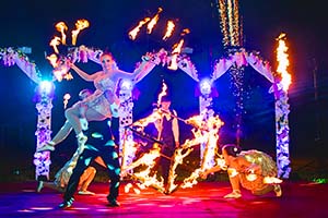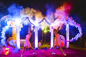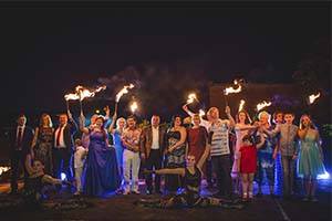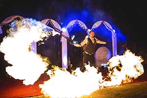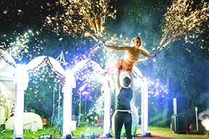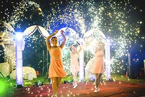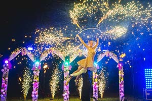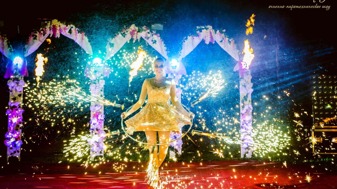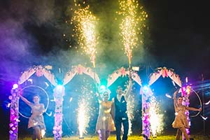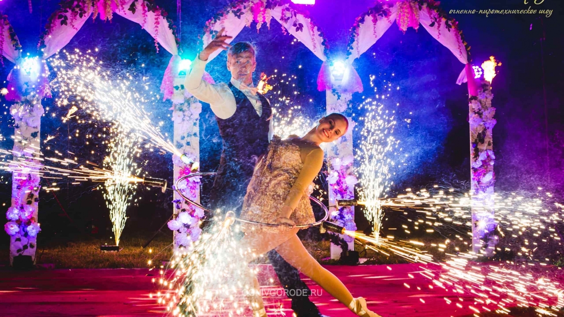 В свадебном шоу используется светлая, красивая музыка в исполнении Blanc Faces и Glee Cast. Образ девушек — это символ нежности, любви. Мужской — олицетворяет силу, величие, галантность. В номере используются акробатические трюки, танцевальные поддержки c пиротехническим реквизитом. После шоу программы интерактивная часть - молодожены поджигают огненное сердце, общая фотосессия с факелами и огнеметом.